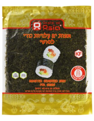 אצות נורי להכנת רולים של סושי. נורי גולד הן אצות פריכות וניתן לעשות בהן מגוון שימושים במתכונים מעבר לסושי – אפשר לחתוך אותן ולקבל תוספת טעם נהדרת לסלטים, לרטבים ולמנות דגים. האריזה מכילה 10 דפי נורי.